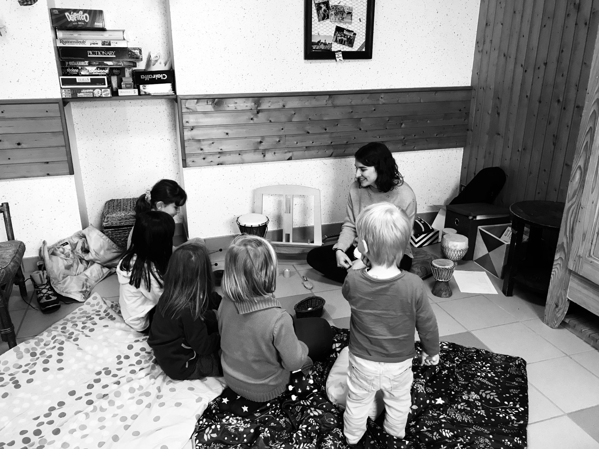 Une séance collective avec L'émerveille, c'est un moment de partage et d'émerveillement, à la découverte des livres et des sons.